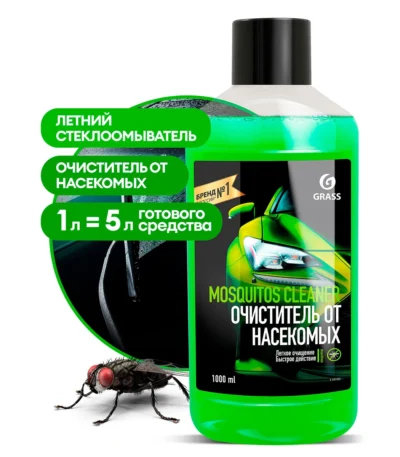 залить готовый к использованию продукт в бачок стеклоомывателя.Летний стеклоомыватель «Mosquitos Cleaner» (концентрат) (флакон 1 л)