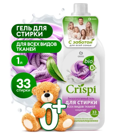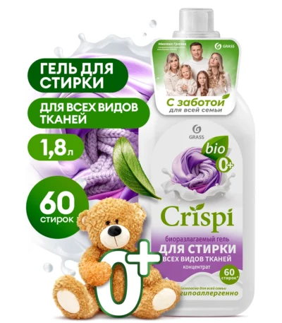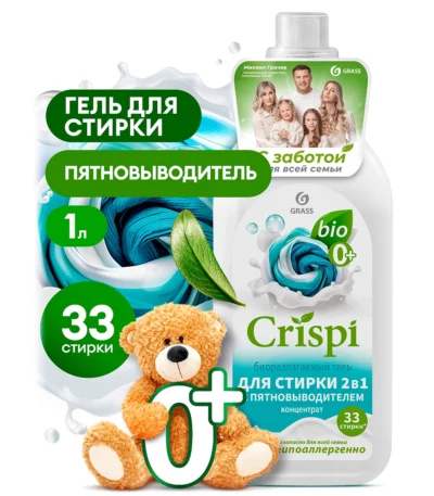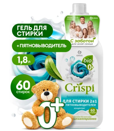 Гель для стирки серии CRISPI с пятновыводителем, эффективно удаляет пятна. Для цветного и белого белья из натуральных, синтетических и смешанных тканей.Состав