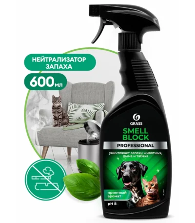 Нейтрализатор запаха "Smell Block" Professional (флакон 600 мл) Средство для нейтрализации гнилостных и табачных запахов, запахов гари после пожара, неприятных запахов животных. Обладает собственным приятным ароматом.