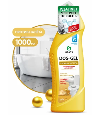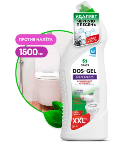 Универсальное чистящее средство DOS-GEL на основе активного хлора для мытья, дезинфекциии отбеливания. Идеально подходит для чистки унитазов, ванн, раковин, кафеля, стоков, сливов, пола и рабочих поверхностей. Обладает дезинфицирующими свойствами, удаляет плесень и грибок. Густая формула позволяет средству дольше оставаться на стенках, продолжая работать.