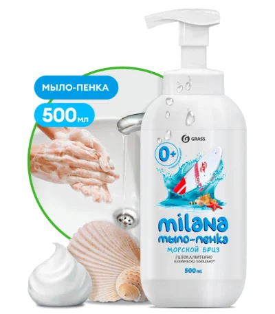 одним нажатием дозатора выдавить пенку на ладони, тщательно намылить руки и смыть водой.Жидкое мыло «Milana мыло-пенка морской бриз» (флакон 500 мл)