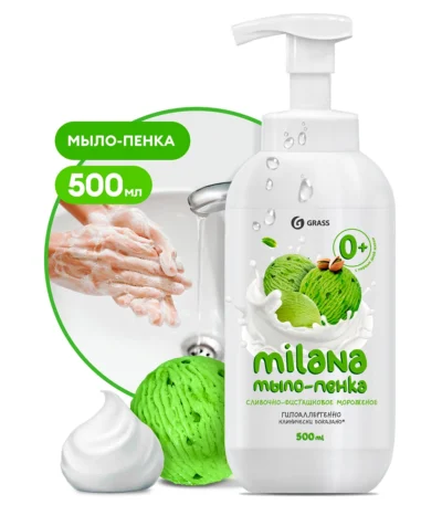 нанесите небольшое количество мыла на влажную кожу, добейтесь образования пены, смойте ее водойЖидкое мыло «Milana мыло пенка сливочно-фисташковое мороженое» (флакон 500 мл)