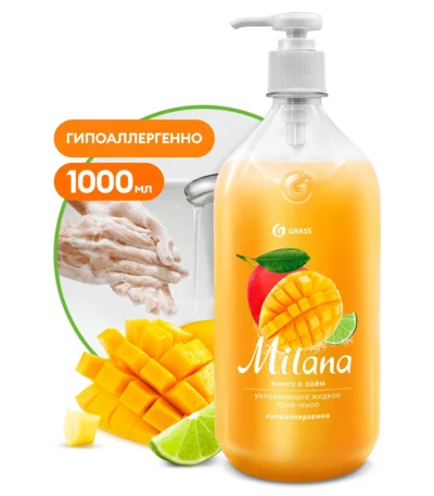 Нанесите небольшое количество мыла на влажную кожу, добейтесь образования пены, смойте ее водой.Крем-мыло жидкое увлажняющее «Milana манго и лайм» (флакон 1000 мл)