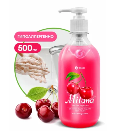 нанести небольшое количество мыла на кожу, добиться образования пены и смыть водой. Используется в дозаторах жидкого мыла.Крем-мыло жидкое увлажняющее «Milana спелая черешня» (флакон 1000 мл)