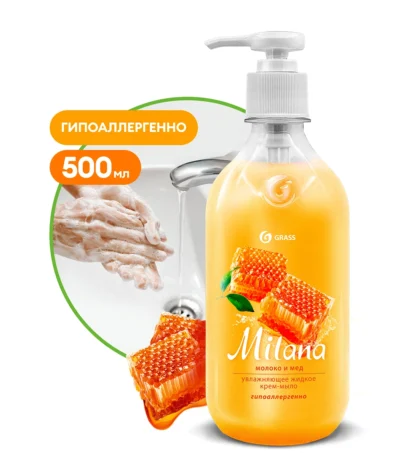 нанесите небольшое количество мыла на влажную кожу, добейтесь образования пены, смойте ее водой.Крем-мыло жидкое увлажняющее «Milana молоко и мед» (канистра 5 кг)