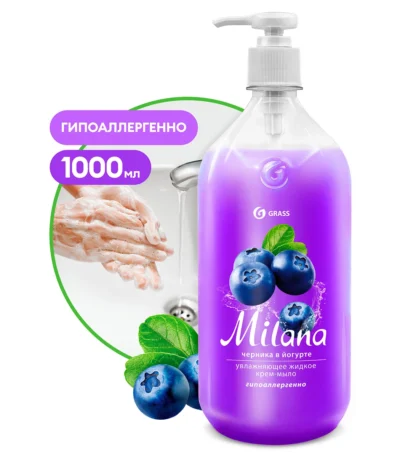 Крем-мыло жидкое увлажняющее «Milana черника в йогурте» (флакон 1000 мл)
