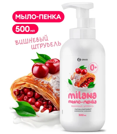 Способ применения: одним нажатием дозатора выдавить пенку на ладони, тщательно намылить руки и смыть водой.Мыло-пенка «Milana» Вишневый штрудель (флакон 500 мл)
