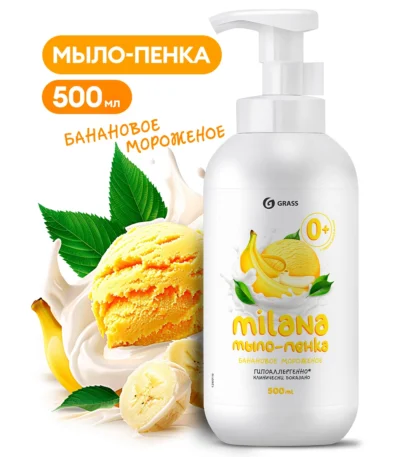 Для экономичного мытья полов, стен, кухонного оборудования и любых других рабочих поверхностей необходимо 30 мл средства растворить на 5 литров воды. Для влажной уборки сильно загрязненных поверхностей: растворите 50-75 мл средства на 5 литров воды, протрите загрязненную поверхность. Для мытья посуды: нанесите небольшое количество средства на губку, намыльте посуду, хорошо смойте водой. Для ручной стирки белья: растворить 150 мл средства в тазике с водой, постирать и прополоскать водой.Мыло-пенка «Milana» Банановое мороженое (флакон 500 мл)