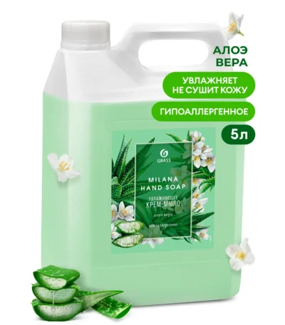 нанести небольшое количество мыла на увлажненную кожу, добиться образования пены и смыть водой. Использовать строго по назначению!Крем-мыло жидкое увлажняющее «Milana алоэ вера» (канистра 5 кг)
