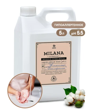 нанести небольшое количество мыла на кожу, добиться образования пены и смыть водой. Используется в дозаторах жидкого мыла.Крем-мыло жидкое увлажняющее «Milana Professional» (канистра 5кг)