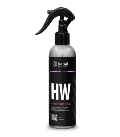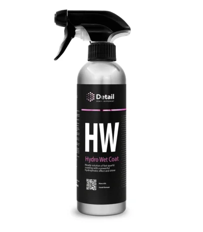 Готовый раствор кварцевого покрытия с мощным гидрофобным эффектом и блеском. Hydro Wet Coat (HW) за считанные секунды создаёт микрослой обеспечивающий грязе- и водоотталкивающий эффект. Инновационное средство разработано для профилактики всех профессиональных защитных покрытий в условиях автомоечного комплекса. Подходит для следующих поверхностей: кузов автомобиля, наружный пластик, стёкла, шины и диски. Средство устойчиво к щелочам и другой агрессивной дорожной химии. Длительный срок службы в отличие от жидких восков - до 3-х месяцев.Состав