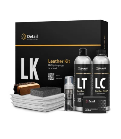 Набор по уходу за кожаным салоном, который включает в себя чистящее средство Leather Clean 500 ml, крем для защиты кожи Leather 500 ml, мягкая губка для нанесения крема, щетка для интерьера, пенообразователь, микрофибровое полотенце 3 шт., набор нитриловых перчаток.Состав