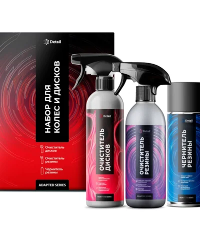 В набор входит очиститель дисков, очиститель резины и чернитель резины.Набор для очистки кожи Detail