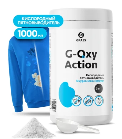 G-Oxy Action универсальное чистящее средство на основе активного кислорода, которое эффективно удаляет застарелые загрязнения и пятна, отбеливает, нейтрализует запахи, подходит для белого и цветного белья. Универсальный пятновыводитель, для решения сложных пятен с различных поверхностей. Подходит для пластика, резины, стекла, камня, кафеля, нержавеющей стали, эмалированных металлических поверхностей, фаянса, стеклокерамики, ковров, обивки мягкой мебели, необработанного дерева.Состав