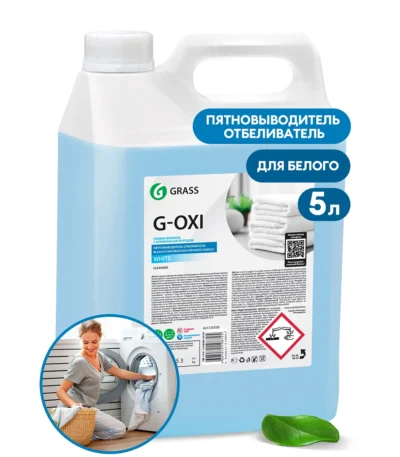 Пятновыводитель-отбеливатель G-Oxi для белых вещей с активным кислородом. Благодаря активному кислороду пятновыводитель-отбеливатель для белых и светлых тканей удаляет загрязнения различного происхождения, устраняет запахи и усиливает белизну, легко справляется с пятнами от травы, ягод, красного вина, сока, шоколада и др. Эффективен в широком диапазоне температур: от +30 до +90˚C. Подходит для автоматической и ручной стирки.Состав